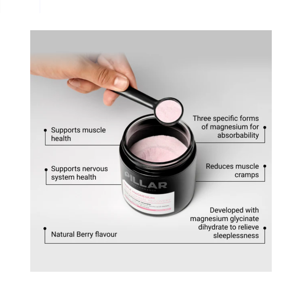 Our TRIPLE MAGNESIUM Powder is uniquely flavoured using natural strawberry and beetroot extract, which contains a special combination of compounds not found in many other foods. PILLAR has included beets in this recovery formulation as they have been associated with a huge range of benefits, notably cardiovascular health and blood sugar support.