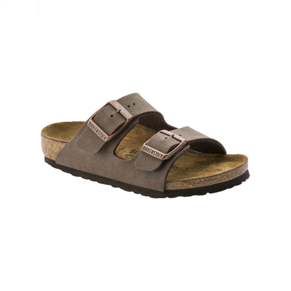 Our iconic two-strap sandal is now available for kids. The kids' Arizona sandal has softer anatomical features on the cork-latex footbed to promote the natural growth of feet. The upper is our skin-friendly Birkibuc material which is durable and easy to care for.
